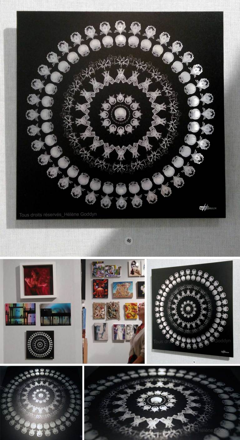 Tandis qu’au Salon des « Petits Formats », le Mandala Humain « Être » (20 x 20 cm) a innové avec sa nouvelle technique de tirage d’art qui joue avec la lumière et la réfléchi.