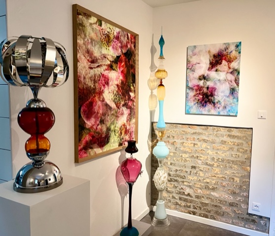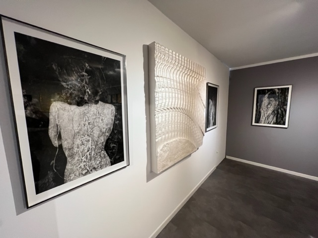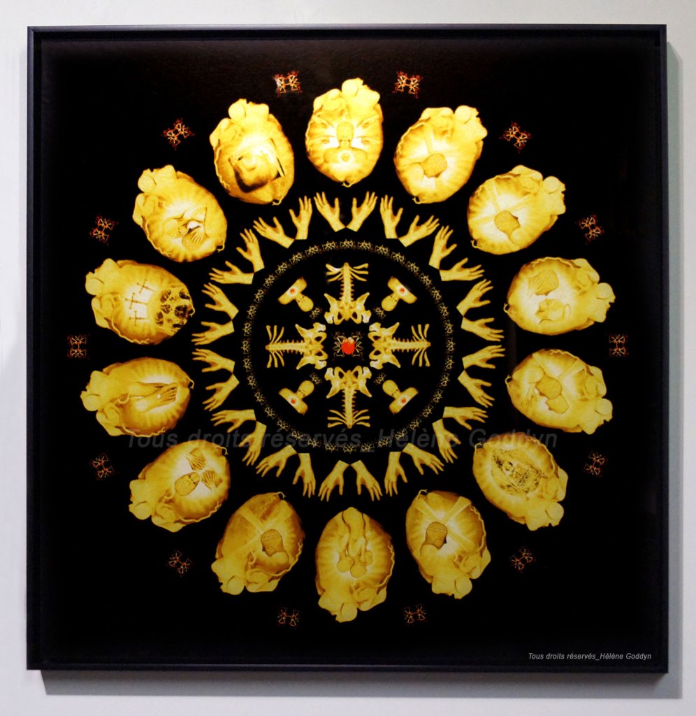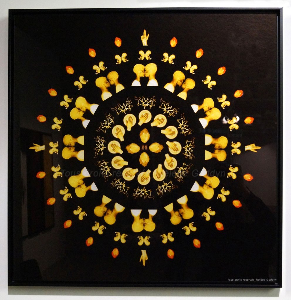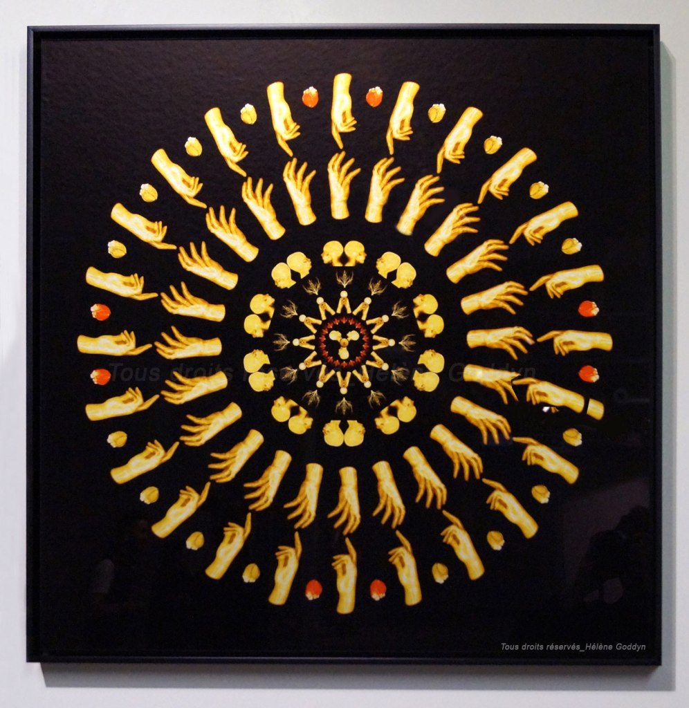 La commissaire Eliane Nagata trace ensuite un fil rouge entre la série « Passion » d’Hélène Goddyn, véritables mandalas humains composés d’images radiographiques montrant l’universalité de l’homme, les touchantes photographies de Lola Moser, qui nous plongent dans les reflets de la nature et des compositions imaginatives florales de Pierre Guillaume Vuillecard.