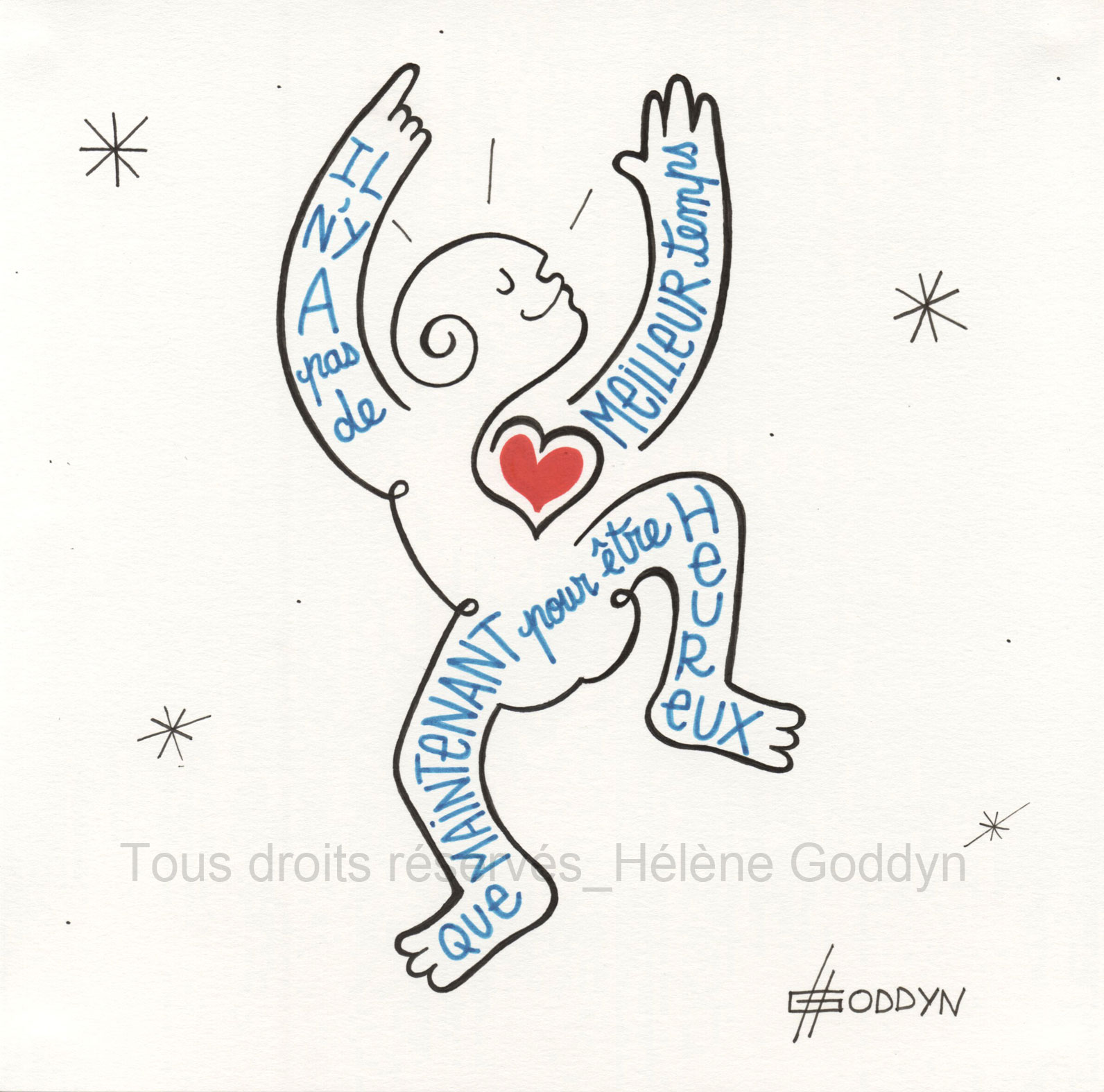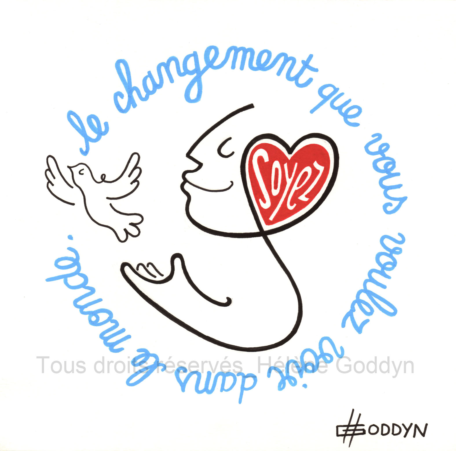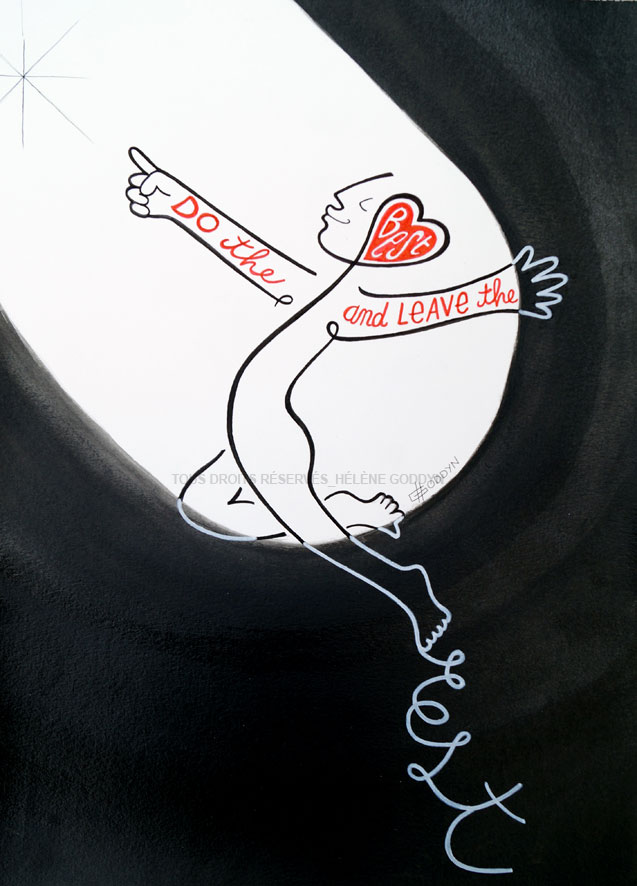 «Hélène convoque au fil serein de ses dessins, des messages d’espoir et de renouveau, un concentré d’humanité dans ce que celle-ci recèle de plus positif .» Eléonore Peretti, directrice du musée « la Maison familiale d’Henri-Matisse »