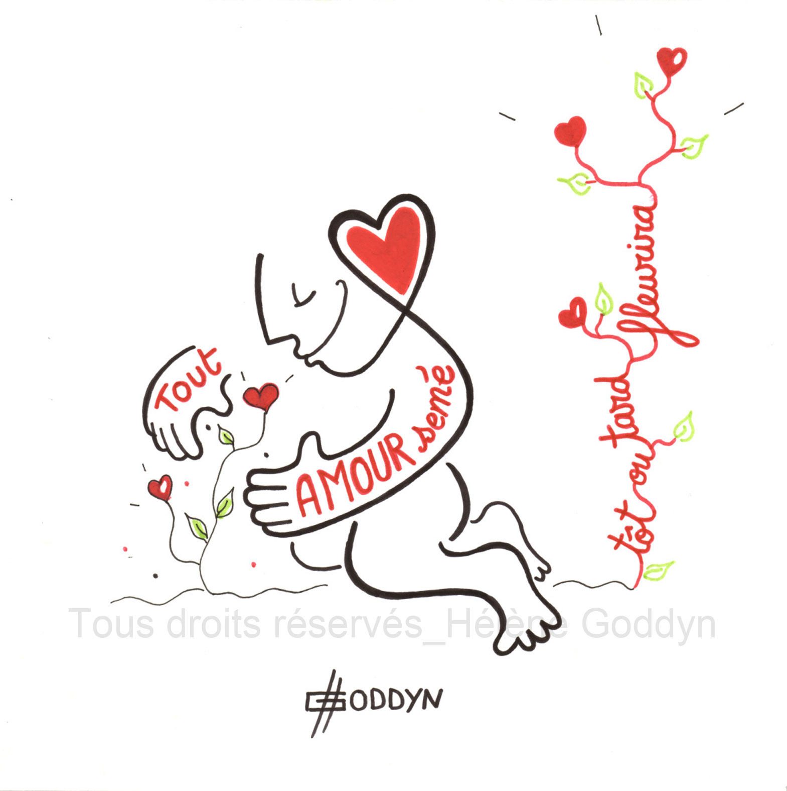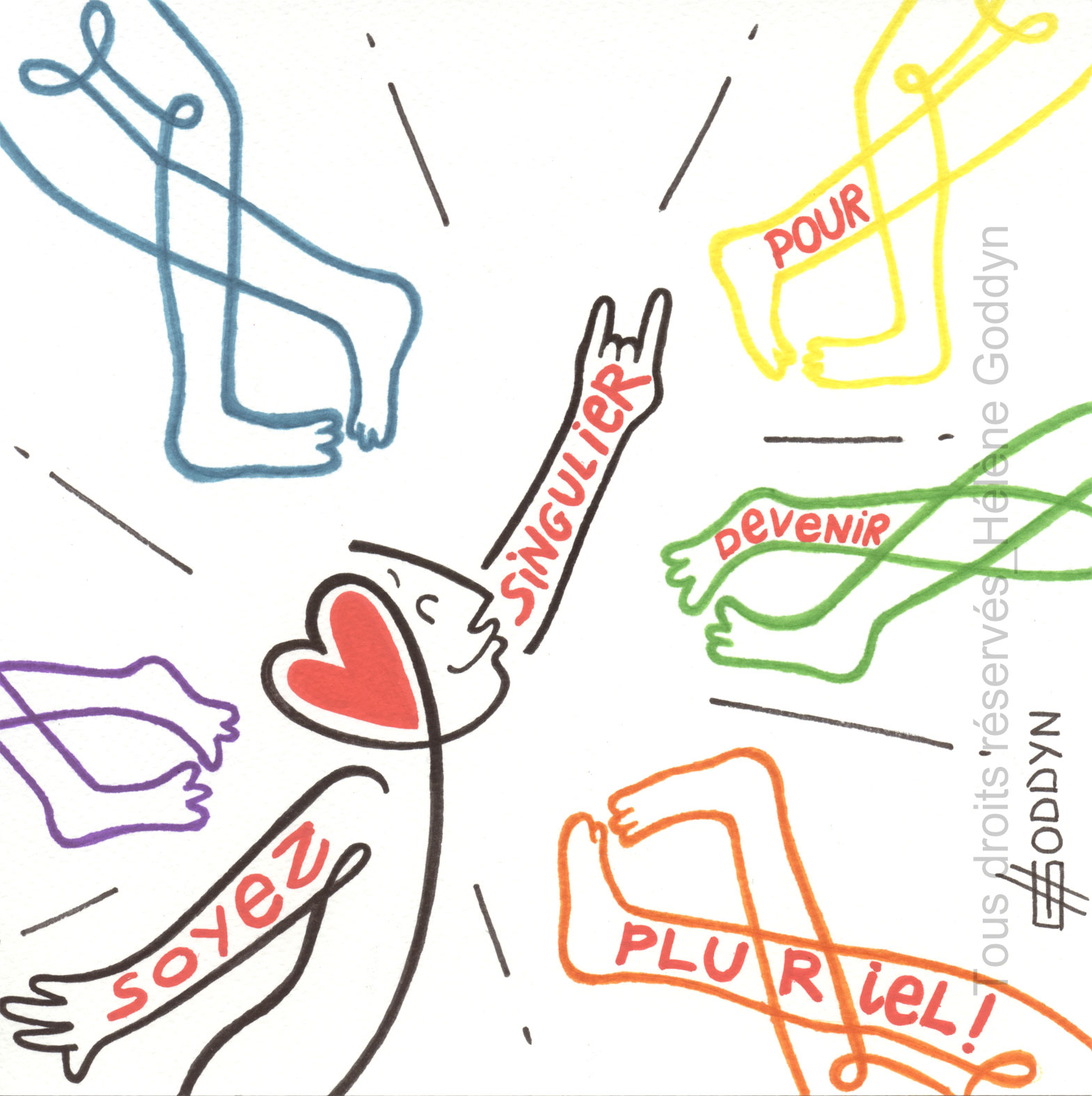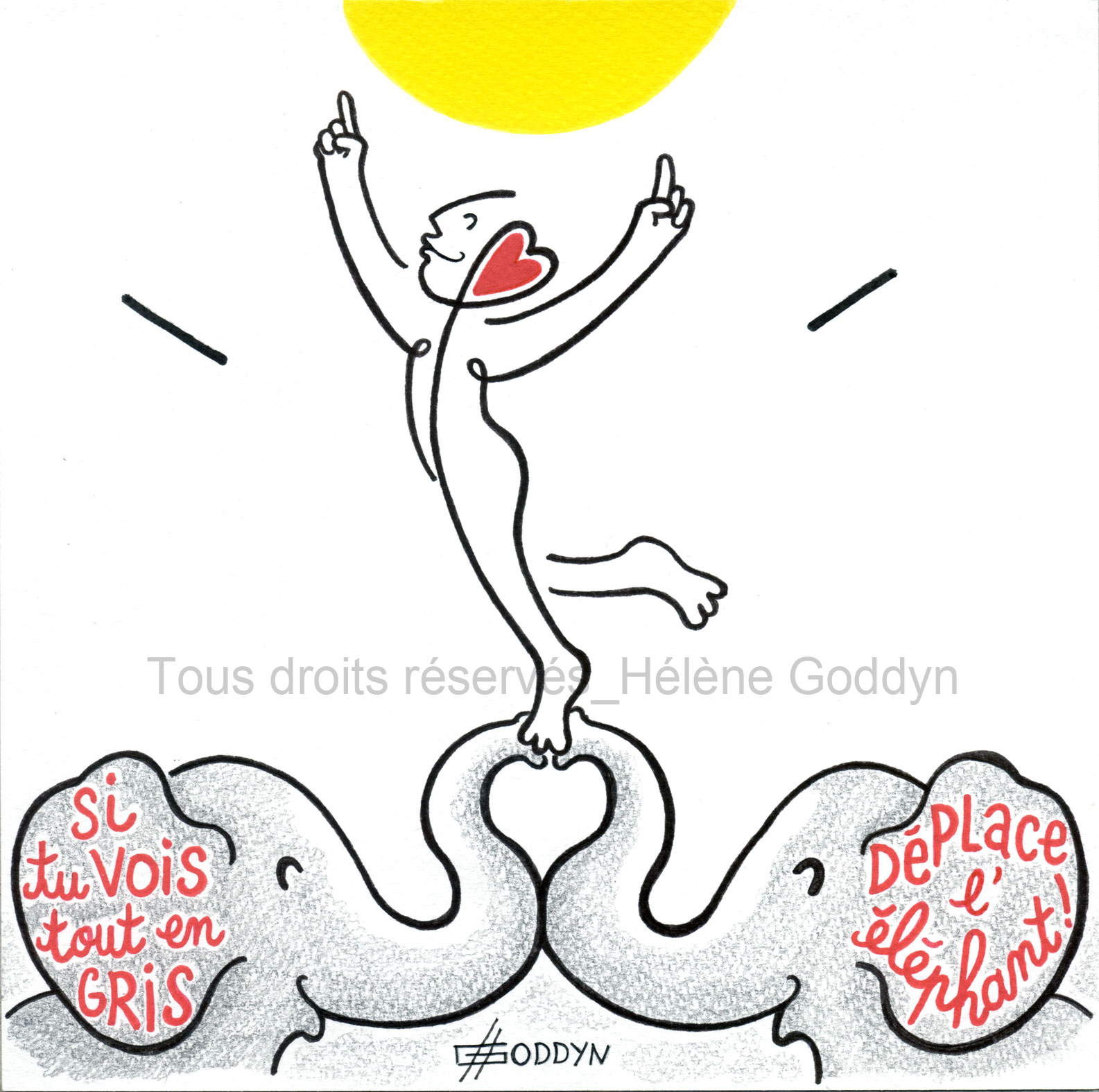 «Hélène convoque au fil serein de ses dessins, des messages d’espoir et de renouveau, un concentré d’humanité dans ce que celle-ci recèle de plus positif .» Eléonore Peretti, directrice du musée « la Maison familiale d’Henri-Matisse »