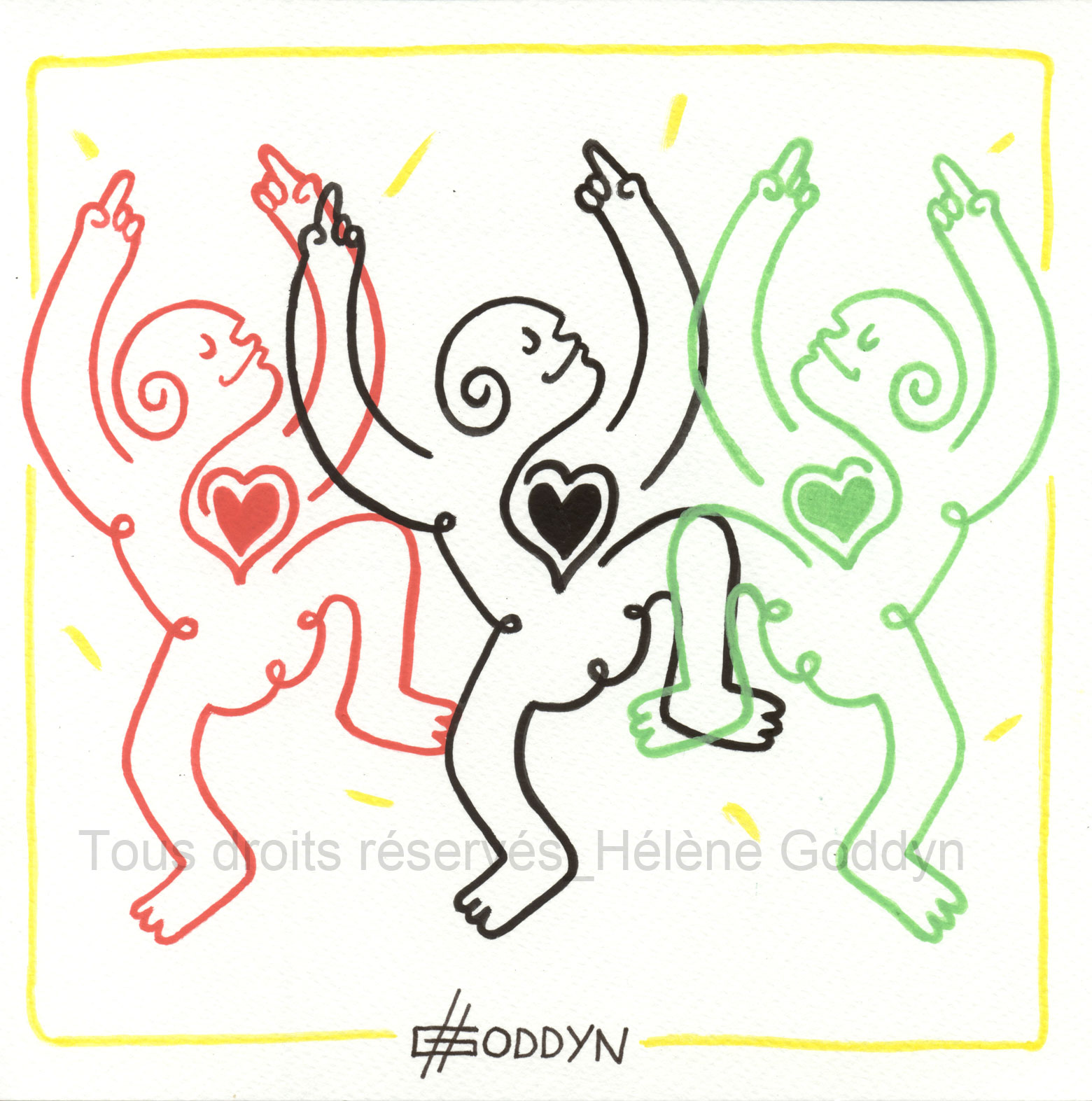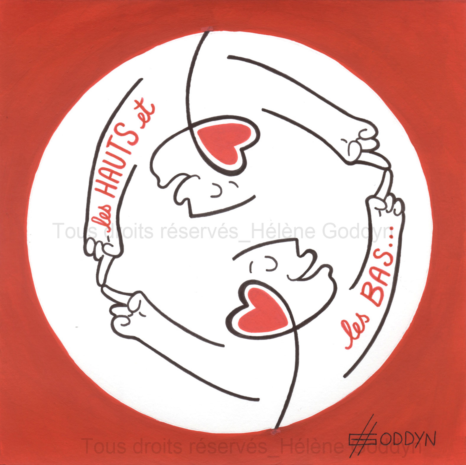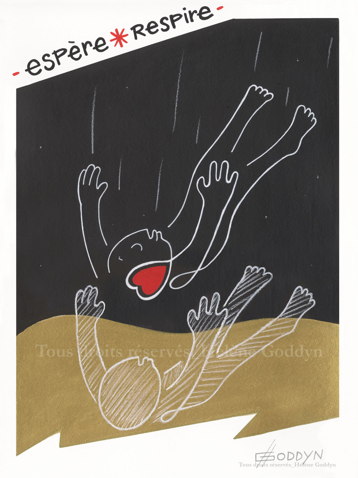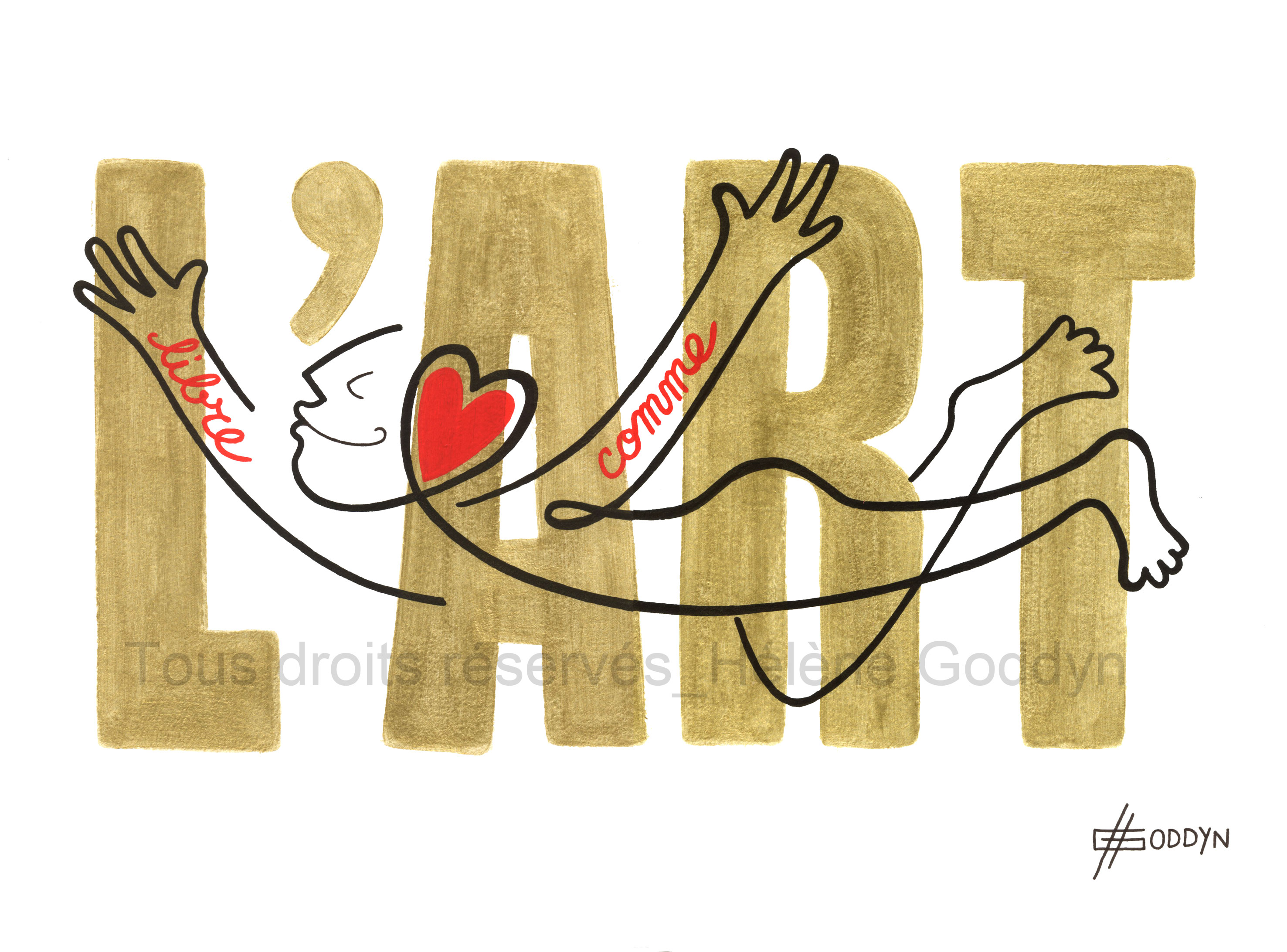 > Dessin original (A4), or/rouge et rouge/noir. Acheter