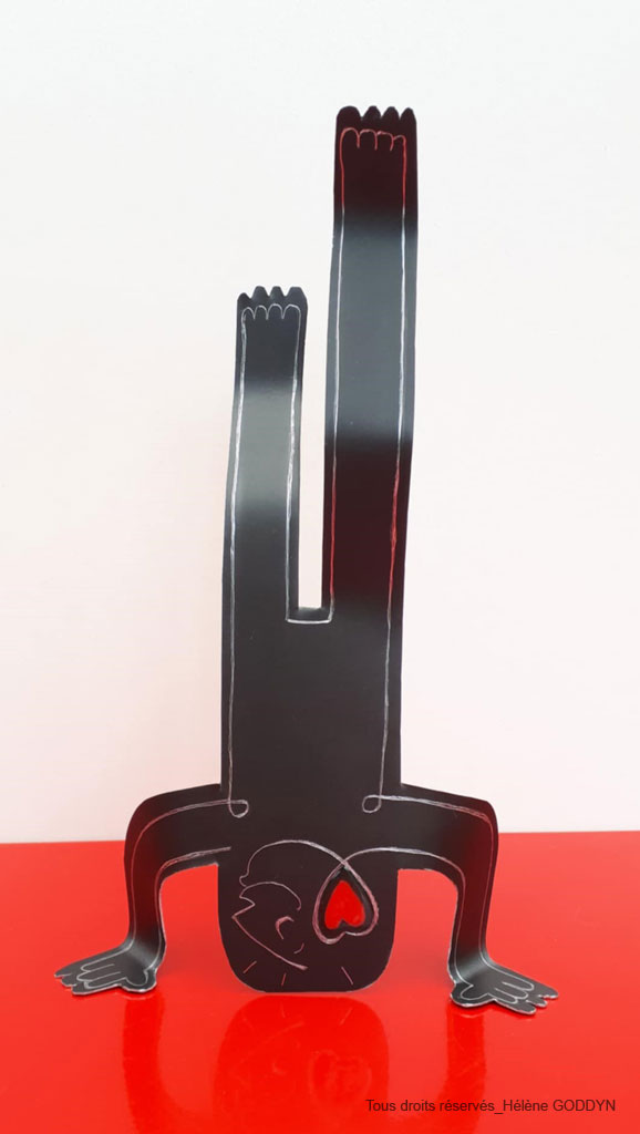 Depuis 2022, les dessins se sont sauvés du cadre pour vivre leur propre aventure et devenir « Les Voyageurs », des sculptures en métal recyclé »