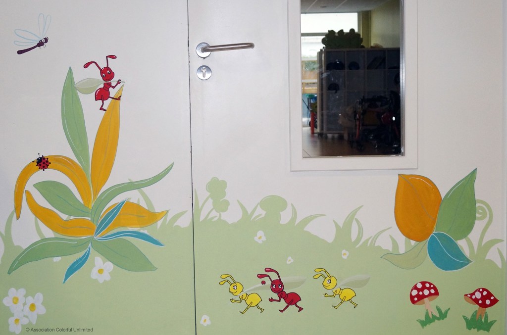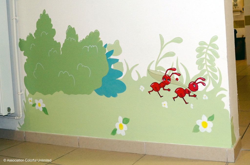 Embellissement des murs de l’IME Lino Ventura de Lomme (59), accueillant des enfants en déficience motrice, intellectuelle, ou polyhandicapés. Voilà un projet qui me tenait à cœur! Ce projet de fresque a été initié par la Sauvegarde du Nord à Lille et en collaboration avec l’association Colorful Unlimited, dirigée par le peintre en décor Christophe Ourdouillie.