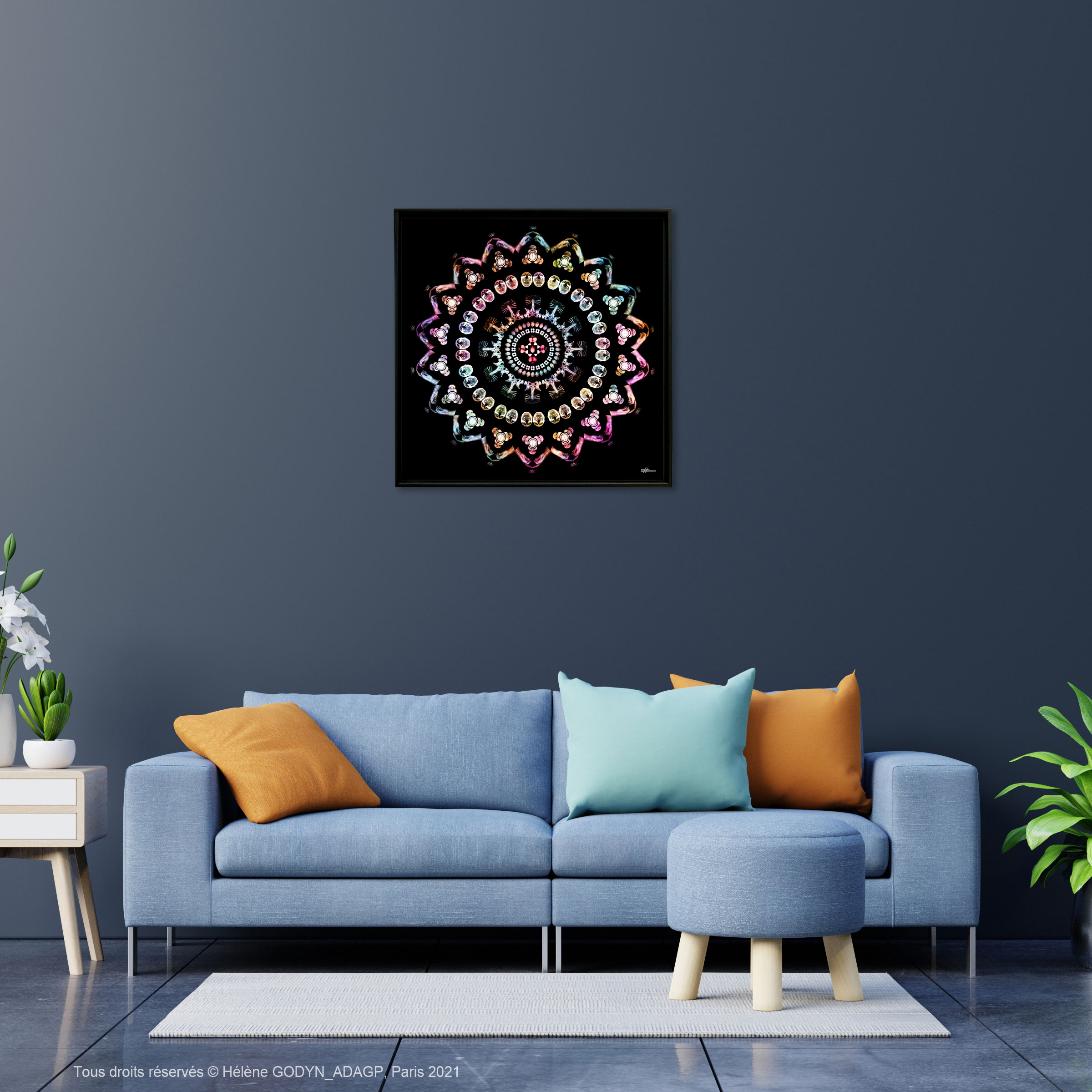 > Tirage d’art contrecollé sur aluminium-dibond encadré en caisse américaine bois noir. Tirage sous cadre possible.
