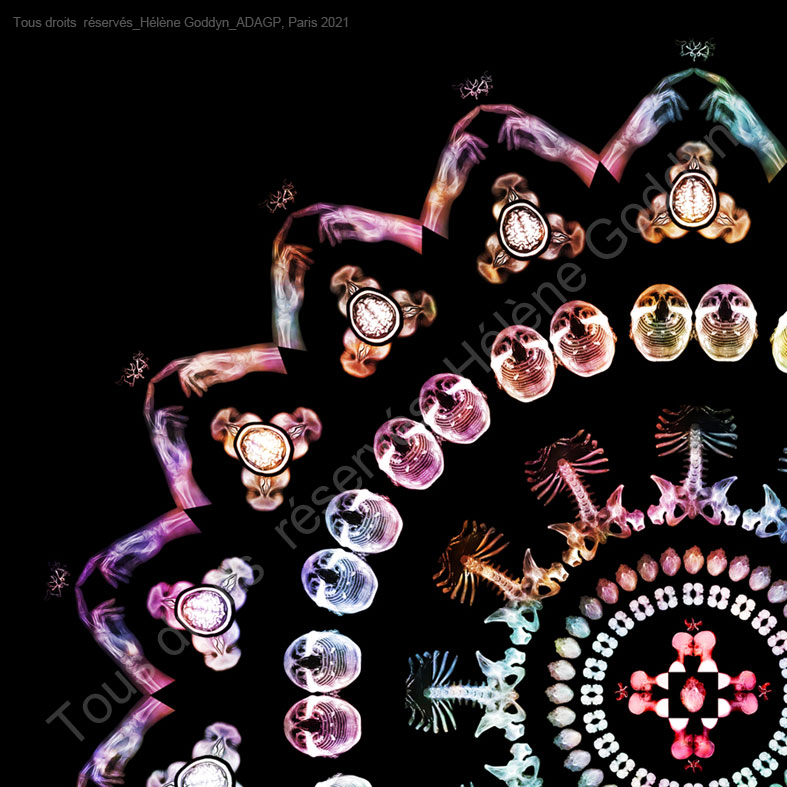 > « ENTREvues » fait tomber « les masques »… Et vous recentre vers votre « être » intérieur… Il illustre le sujet du rendez-vous, du rassemblement, de la rencontre physique entre chaque être humain. Connexions physiques fondamentales au bon équilibre de l’être humain, équilibre éprouvé par chacun depuis la crise sanitaire dû au Covid 19. Il a été créé en 2021, pendant un confinement.