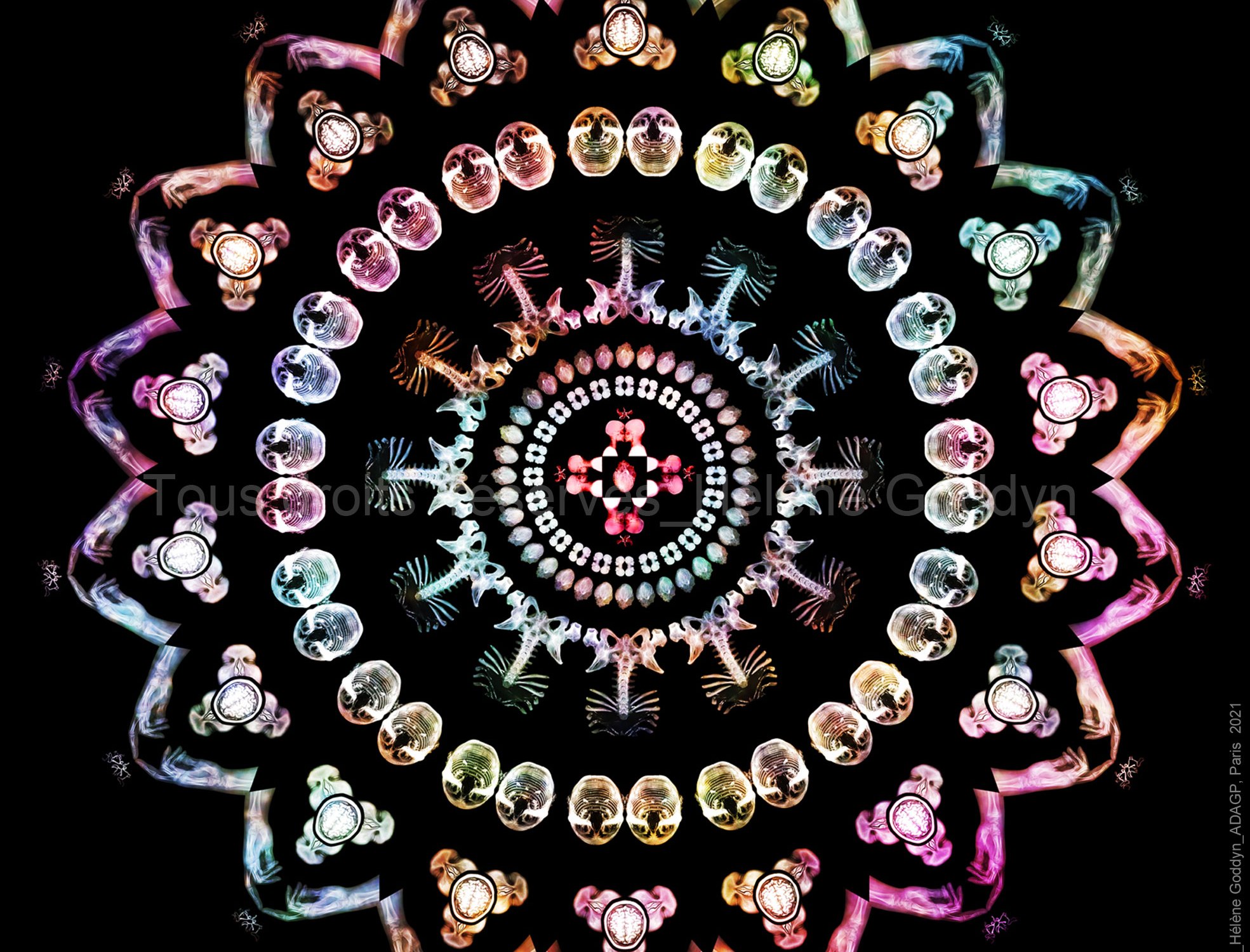 > « ENTREvues » fait tomber « les masques »… Et vous recentre vers votre « être » intérieur… Il illustre le sujet du rendez-vous, du rassemblement, de la rencontre physique entre chaque être humain. Connexions physiques fondamentales au bon équilibre de l’être humain, équilibre éprouvé par chacun depuis la crise sanitaire dû au Covid 19. Il a été créé en 2021, pendant un confinement.