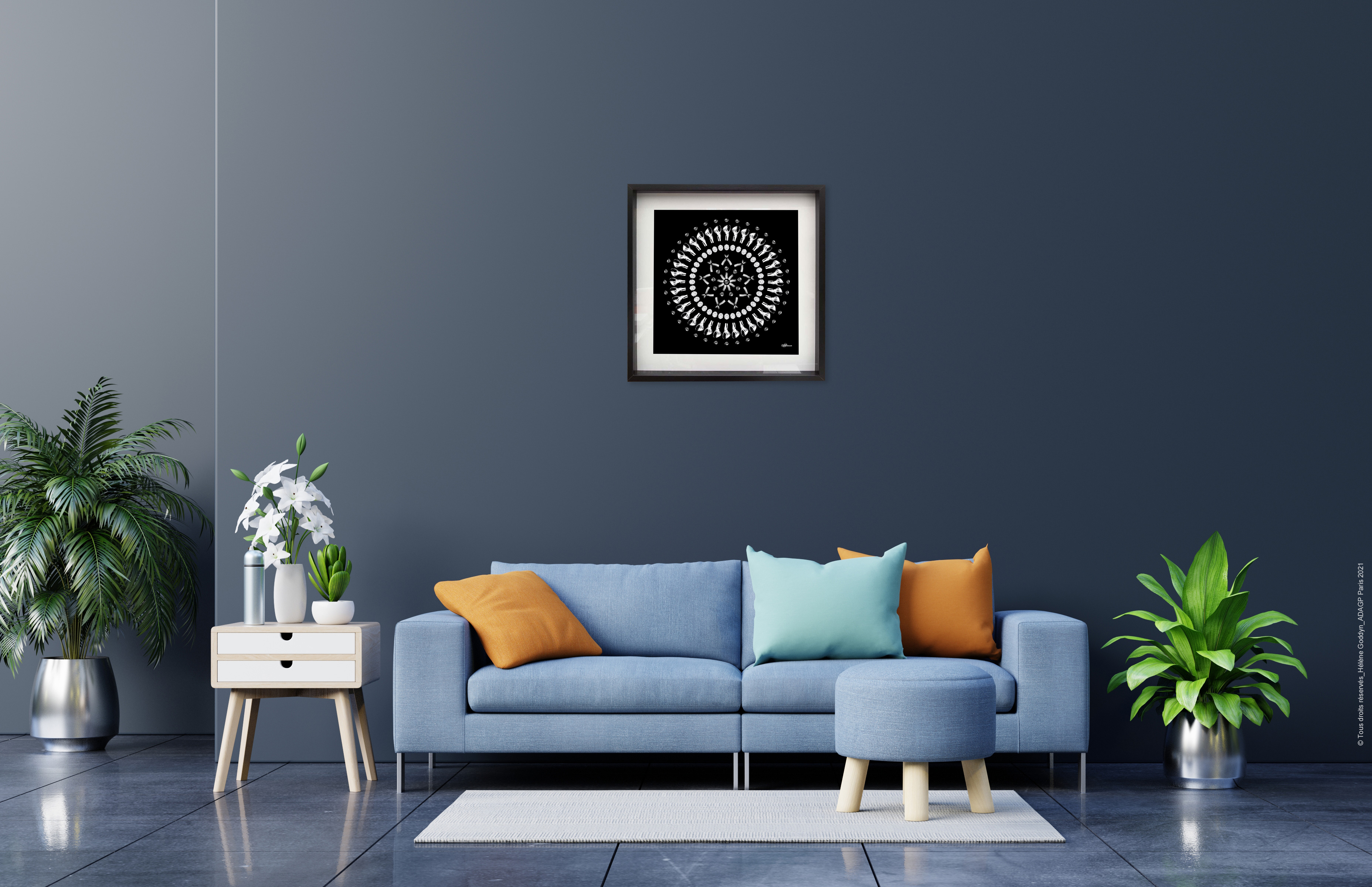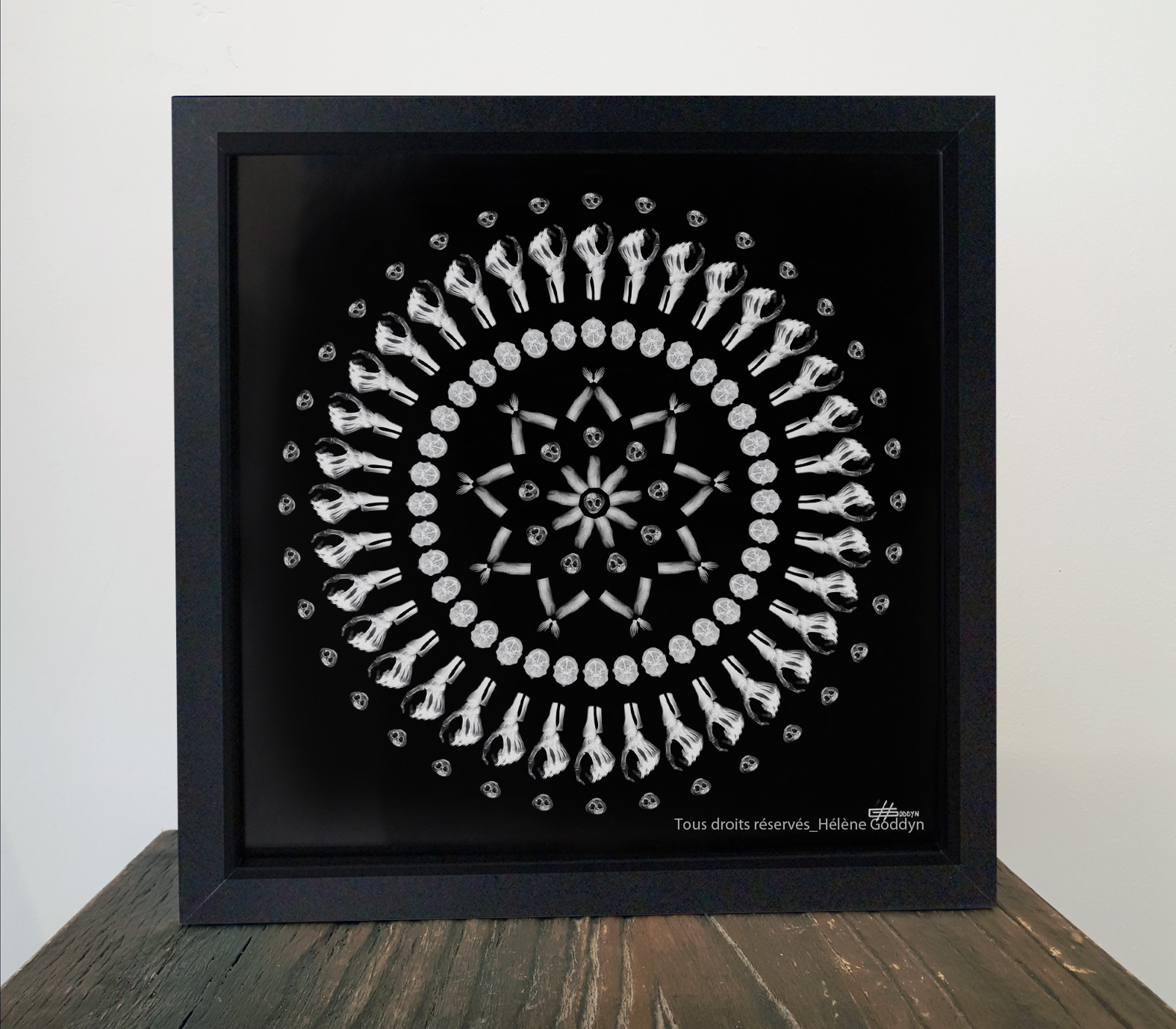 Exemple avec un cadre noir 50 x 50 cm (Tirage 40 x 40 cm) :